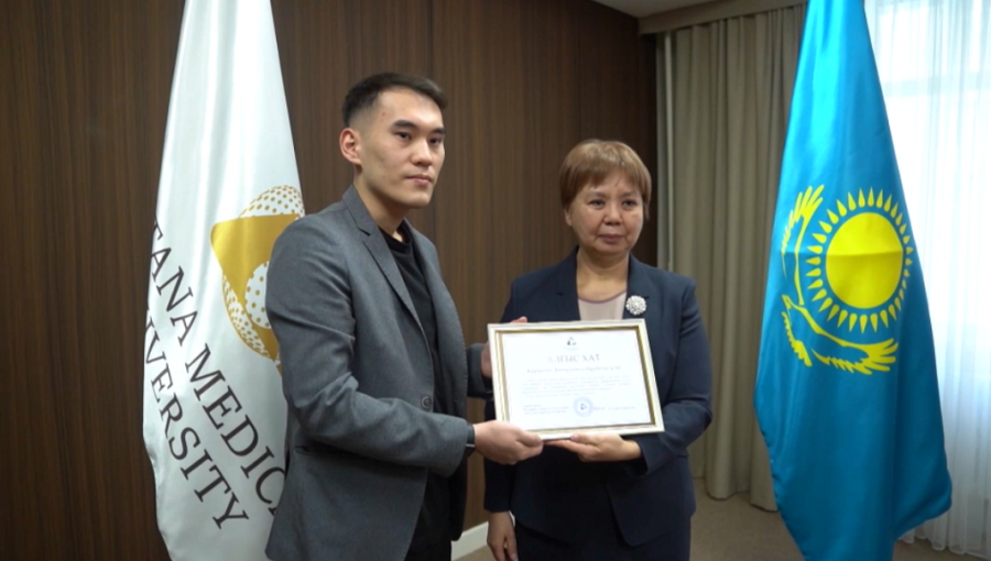 Студент седьмого курса Медицинского университета Астаны Динмухаммед Бектұрған был награжден Почетной грамотой от имени Министра здравоохранения РК Акмарал Альназаровой, сообщает Ult.kz.