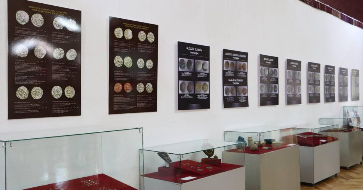 На выставке представлены расписные кирпичи мавзолеев Золотой Орды, восковые фигуры личностей той эпохи, купол мавзолея хана Жошы, уникальные средневековые монеты и старинные карты, а также другие исторические ценности.