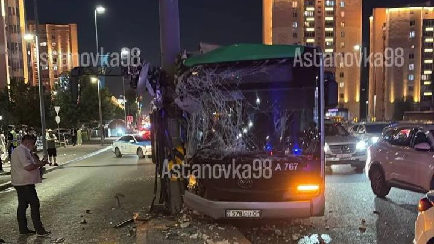 2 июня на проспекте Республики пассажирский автобус врезался в столб, пострадали 15 человек, сообщает Ult.kz.