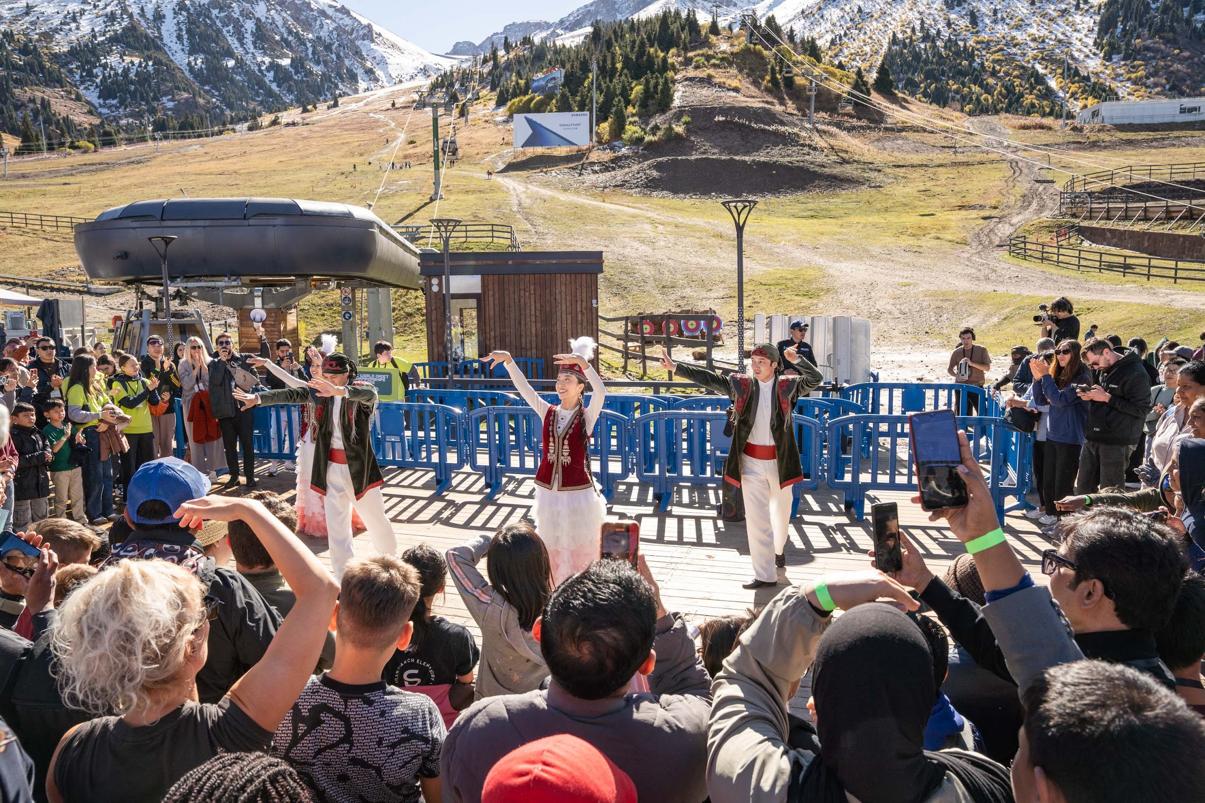 Сегодня 380 участников чемпионата мира среди кадетов по шахматам превратили высокогорный курорт Шымбулак в импровизированную сцену: иностранные спортсмены станцевали знаменитый казахский танец «Қара жорға». Круг танца на фоне заснеженных гор стал ярким акцентом выходного дня и настоящим культурным мостом между гостями и принимающей страной.