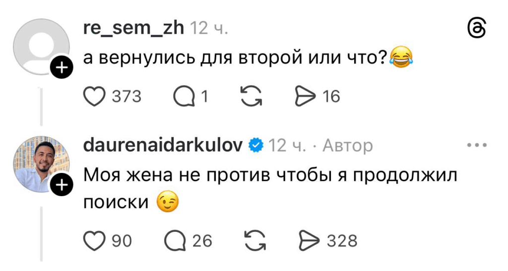 «Несколько месяцев назад я удалил приложение Threads. Мне казалось, что получил всё, что нужно. Честно говоря, я использовал это приложение, чтобы найти себе жену. Похоже, алгоритм приложения понял, кого я ищу, и на моей странице начали появляться потенциальные кандидатки.