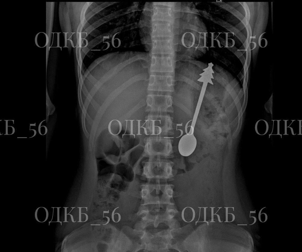 В Москве бригада скорой помощи доставила в больницу ребёнка с жалобой на попадание постороннего предмета в пищеварительные пути. При обследовании было установлено, что ложка застряла в желудке.