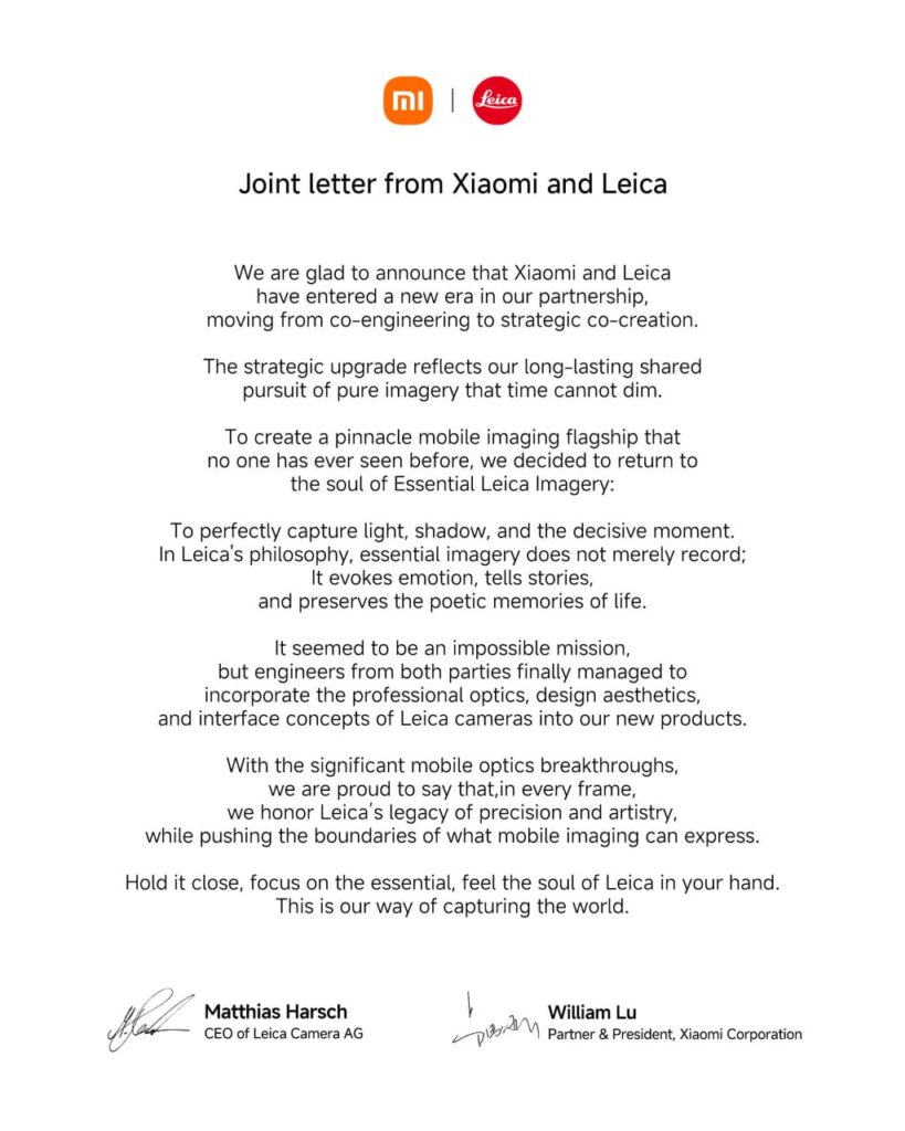 Xiaomi и Leica вступили в новую эпоху нашего партнерства, перейдя от совместной разработки к стратегическому со-созданию.